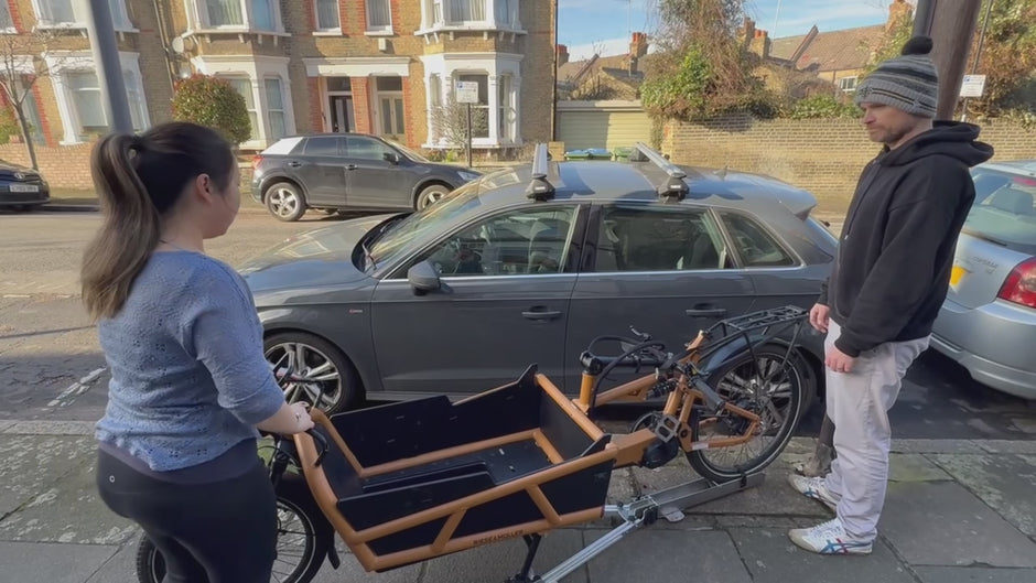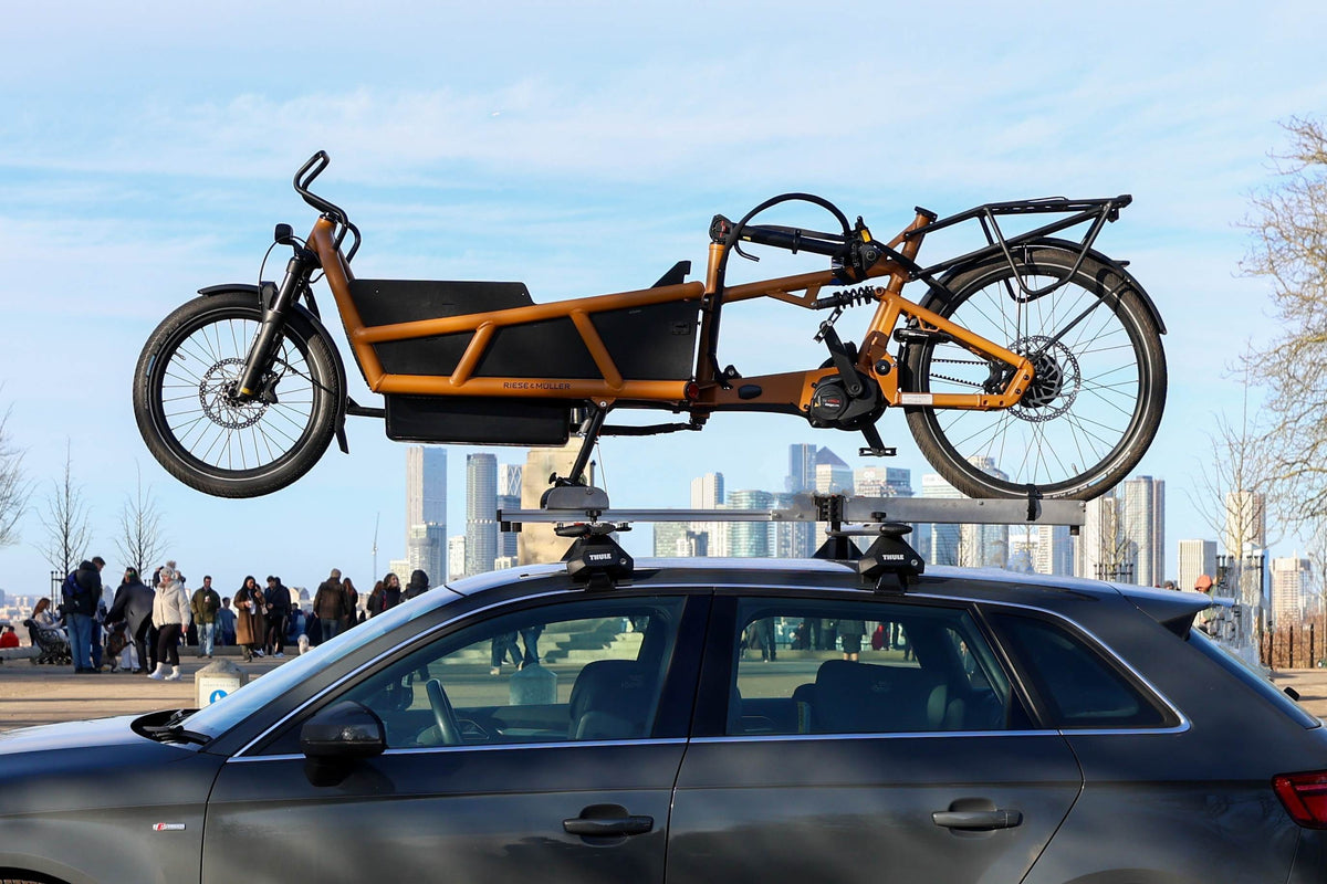 Novel design features and loading technique make it straightforward to get your cargo bike onto your car's roof.