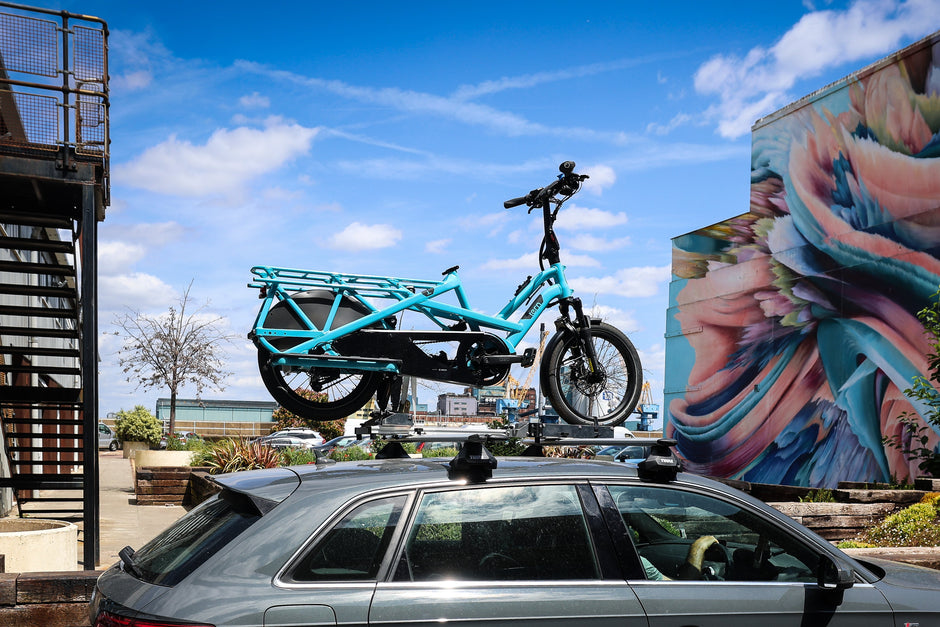 Novel design features and loading technique make it straightforward to get your cargo bike onto your car's roof.